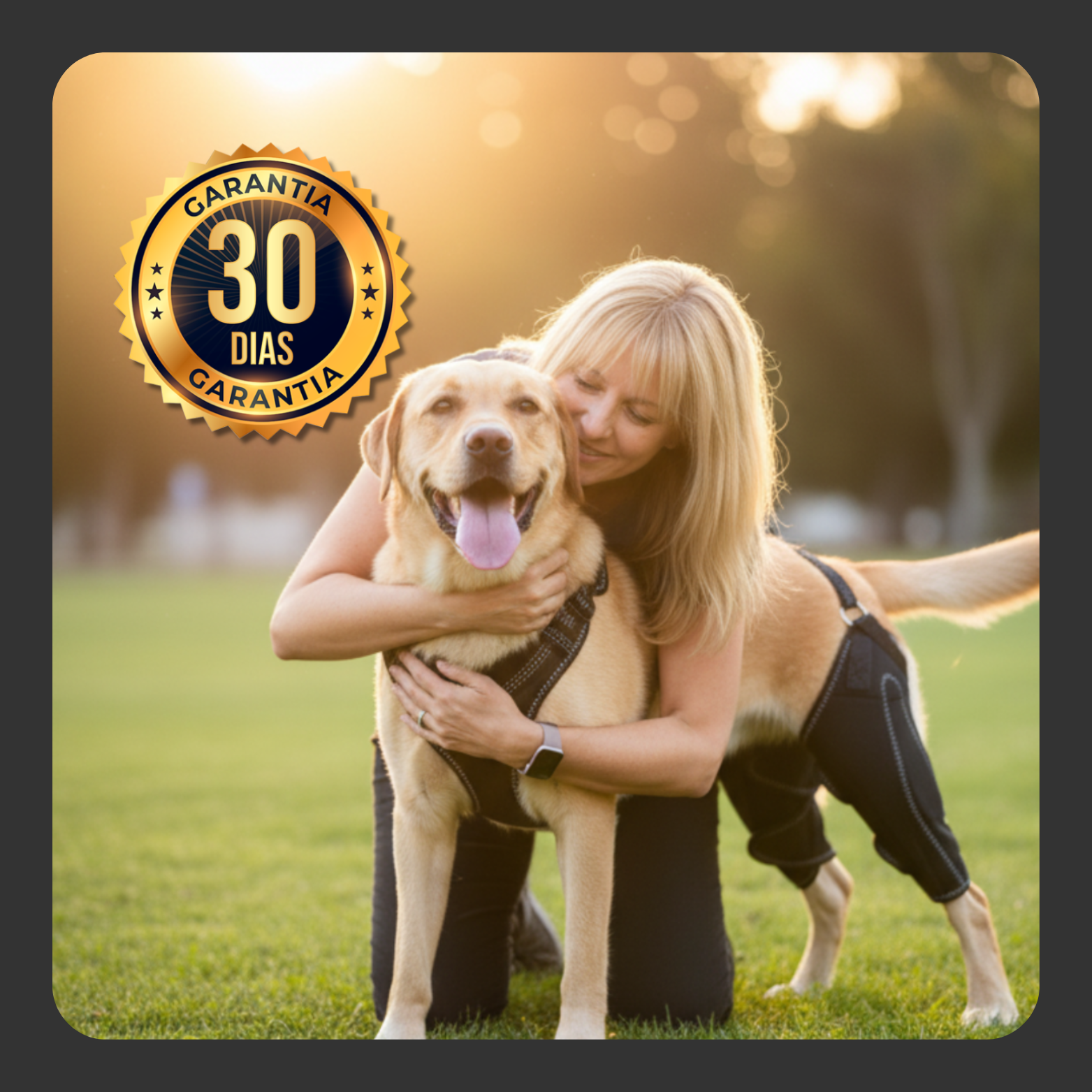 El arnés ortopédico con bisagras metálicas estabiliza la rodilla lesionada mientras protege la sana. En 3 meses, tu perro te recibe saltando cuando agarras la correa. Sin cojear. Sin duda. Solo emoción pura por su caminata diaria contigo. Sus perros recuperaron su vida.